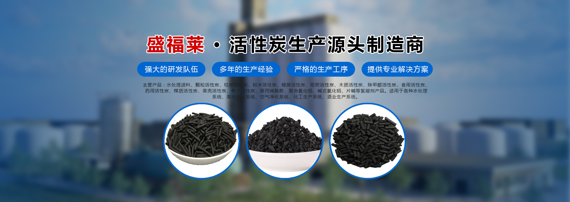 河南盛福萊環保科技有限公司是一家專業銷售各種規格型號活性炭、污水處理藥劑、碳源的公司,位于中原凈水材料基地-鞏義市,是從事各類活性炭及相關產品生產、研發及銷售的一體化企業。主營產品:水處理濾料、顆粒活性炭、柱狀活性炭、粉末活性炭、蜂窩活性炭、吸附活性炭、木質活性炭、除甲醛活性炭、食用活性炭、藥用活性炭、煤質活性炭、果殼活性炭、椰殼活性炭、聚丙烯酰胺、聚合氯化鋁、堿式氯化鋁等絮凝劑產品、碳源,適用于各種水處理系統、海水淡化系統、空氣凈化系統、化工生產系統、酒業生產系統。服務于各種大、中、小型自來水廠、石油化工廠、造紙印染廠、鋼鐵廠、發電廠、食品廠、冶金廠等行業。河南盛福萊環保科技有限公司創立以來